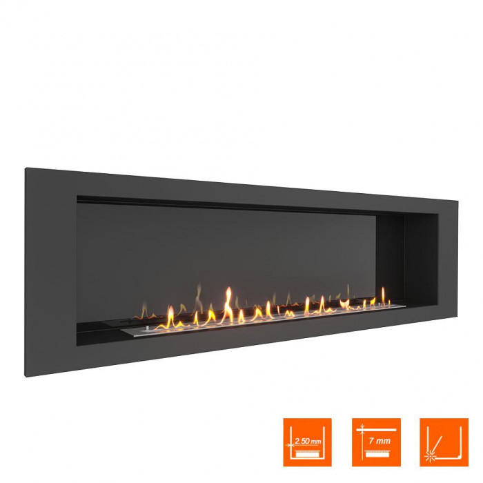Биокамин LONG 1800 - встраиваемый биокамин с черной или стальной рамкой